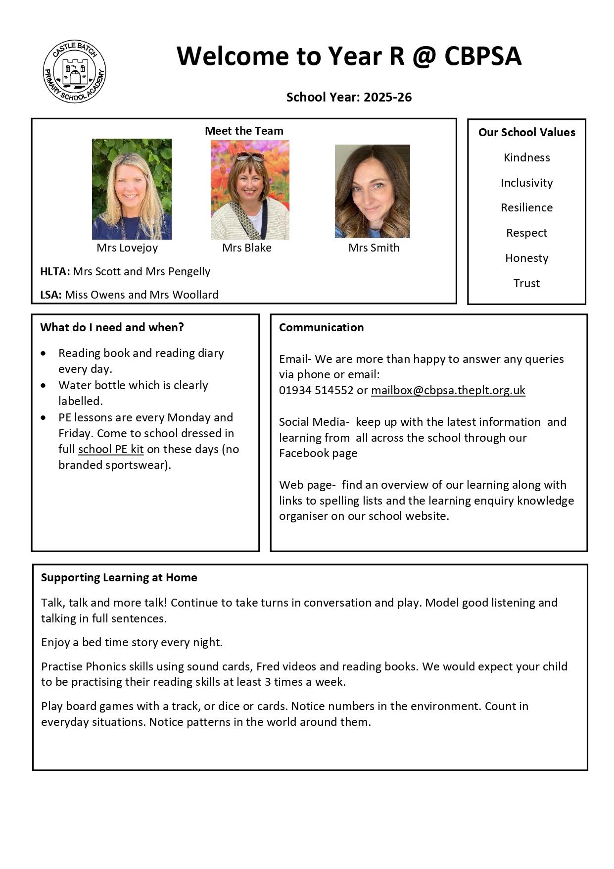 If you have any concerns or queries regarding your child during the academic year, then please contact the class teachers via email or call the school office (email- mailbox@cbpsa.theplt.org.uk)