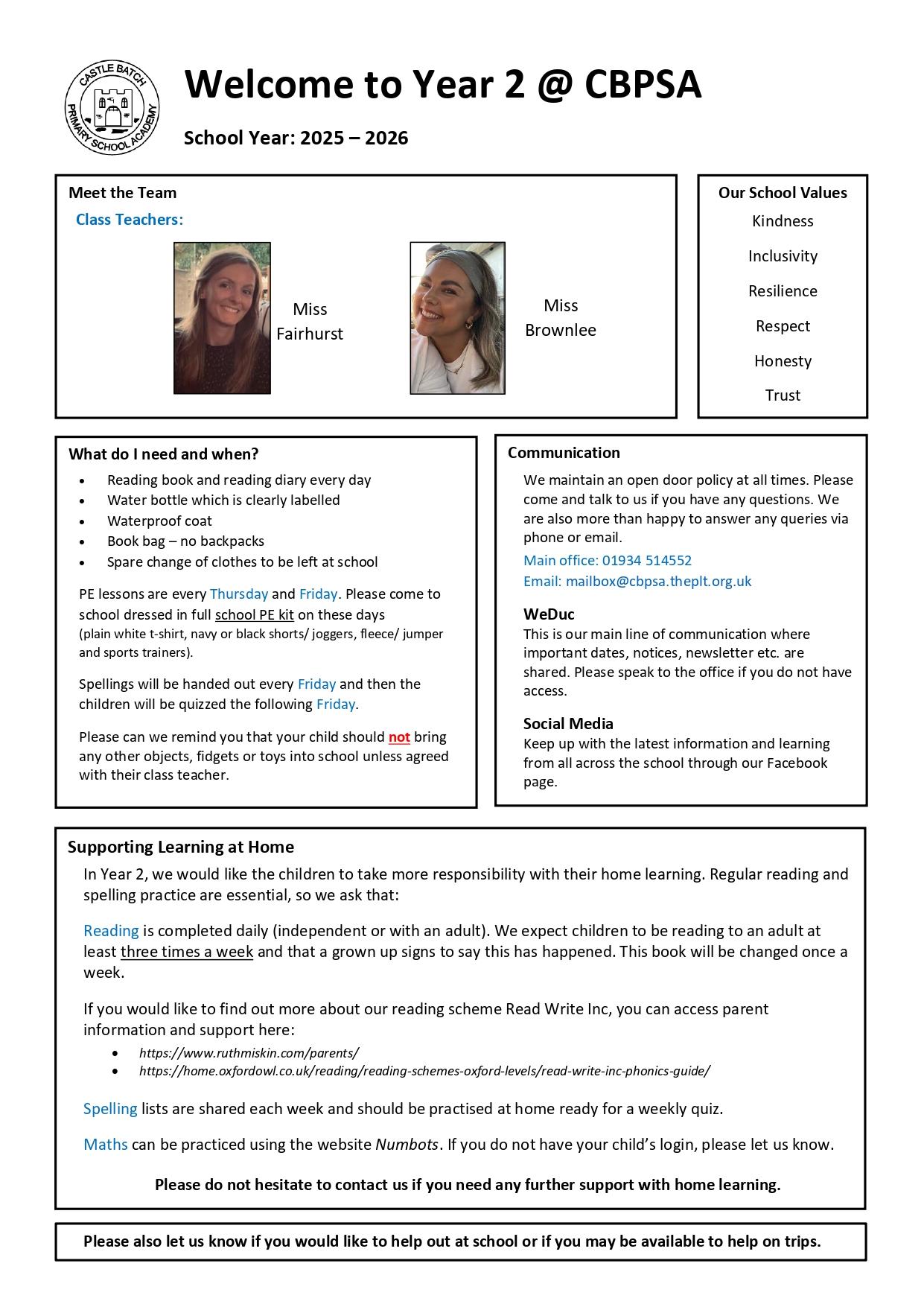 If you have any concerns or queries regarding your child during the academic year, then please contact the class teachers via email or call the school office (email- mailbox@cbpsa.theplt.org.uk)